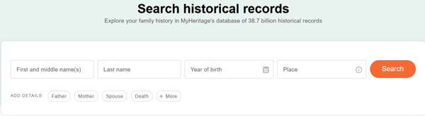 Bare skriv inn etternavnet og fornavnene til din forfader, så vil algoritmen søke gjennom mange års arkiver fra en rekke kilder: